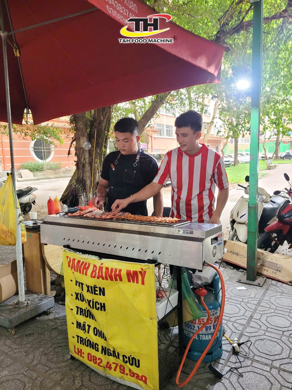 Trong khi đó, bếp đá: Giữ nhiệt lâu hơn → tiết kiệm điện/gas, Tỏa nhiệt đều → xúc xích chín đẹp, vàng đều, Ít phải lật liên tục ,giảm công sức người bán Ngoài ra, bếp đá còn giúp nâng cao trải nghiệm khách hàng vì sản phẩm trông hấp dẫn và ngon hơn rõ rệt.